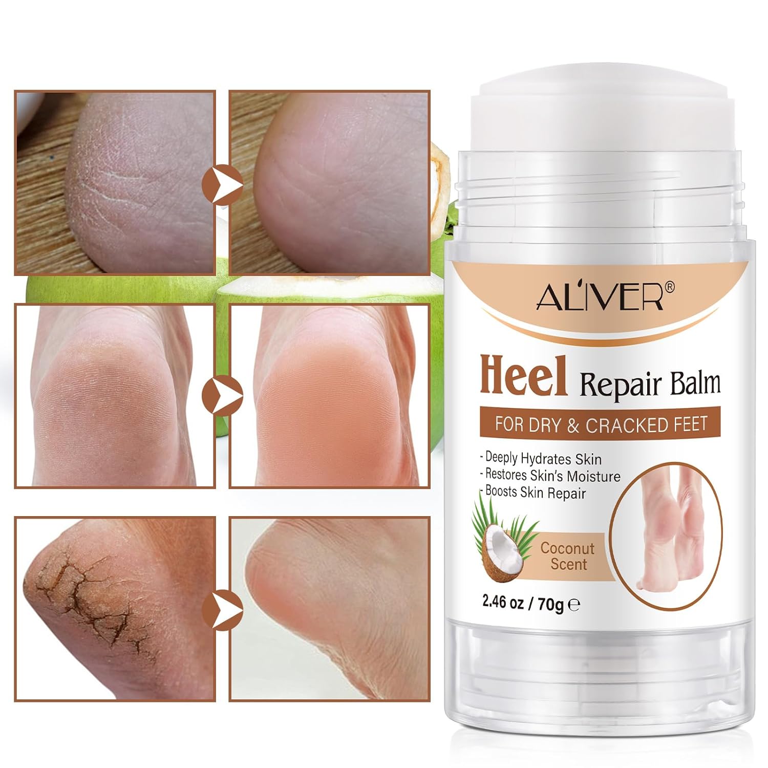 2PCS Heel Repair Balm, Dry & Cracked Feet Treatment Moisturizer, Coconut Scent, 2.46 oz/70 g