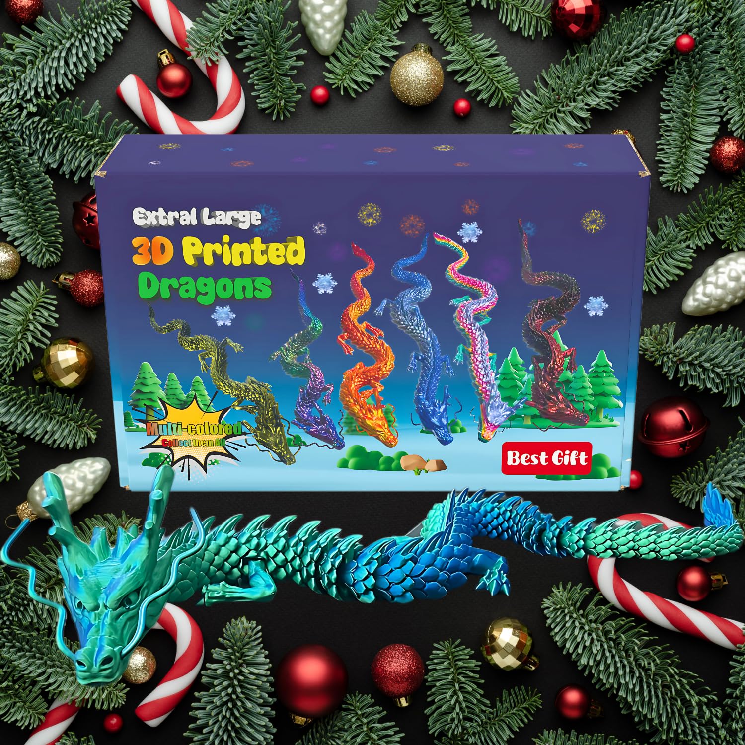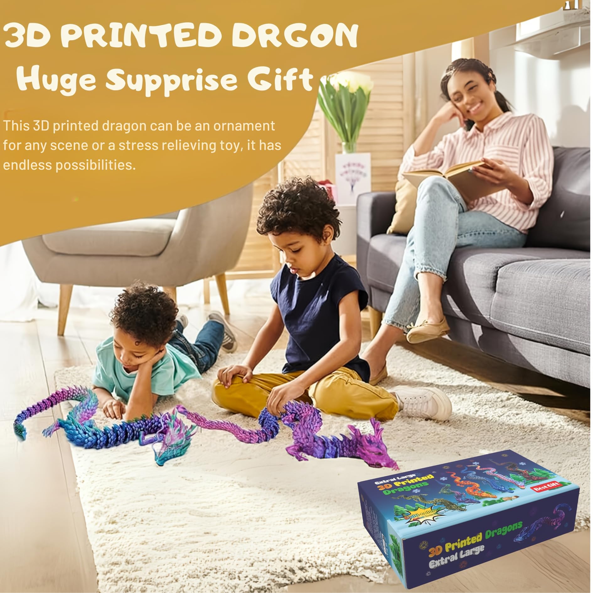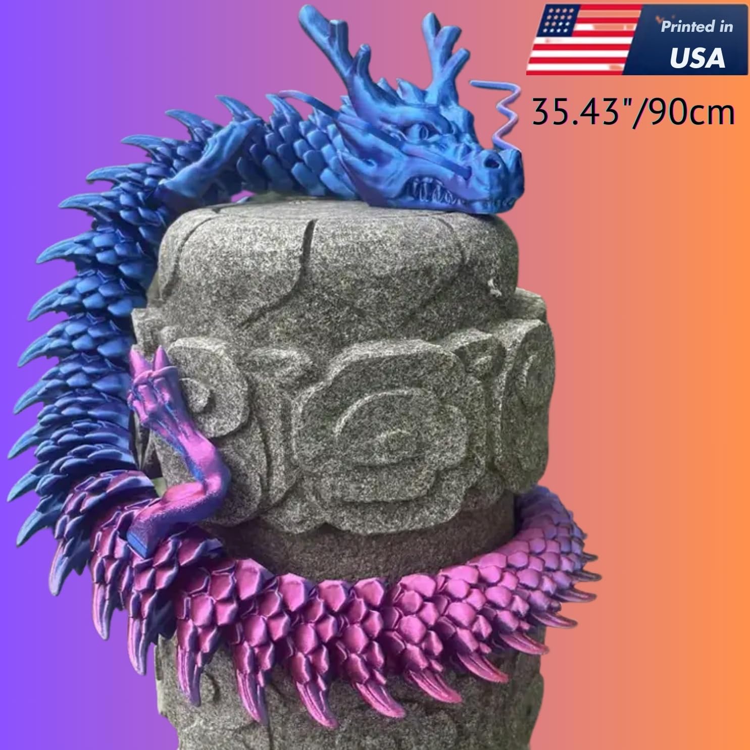 35.4'' Large 3D Printed Dragon Toy Box - Articulated Chinese Dragon, Poseable 3D Printed Animals & Collectible Figurines, Desk & Home Decor - Cool for Kids & Adults