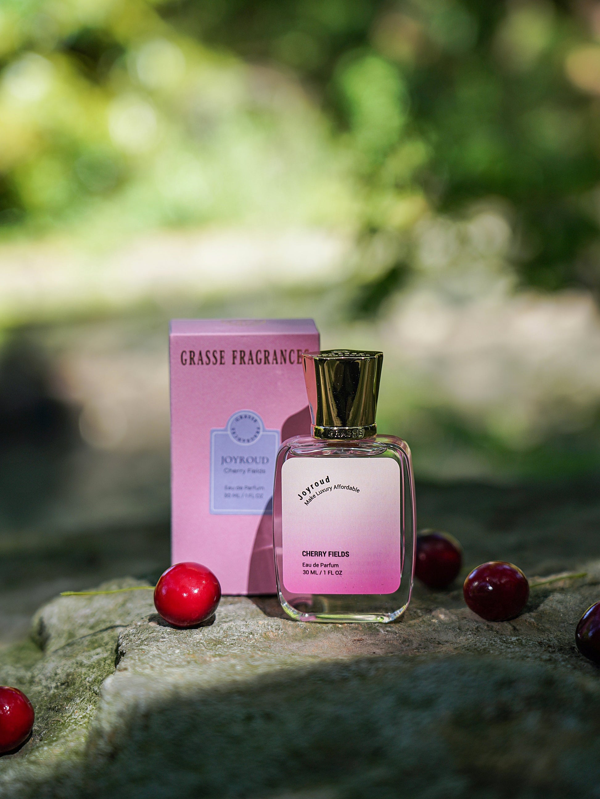 The perfume presented in clear a crystal glass bottle topped with a golden metallic cap, inspired by Tom Ford's Lost Cherry. This luxurious fragrance opens with vibrant notes of cherry, almond, and cinnamon, followed by a heart rich with cloves, rose, jasmine, and plum. It finishes with a deep, seductive base of Peru balsam, tonka bean, and vanilla. The exquisite bottle design reflects the quality and allure of the scent within, offering a touch of sophistication and timeless beauty to your collection. Cherry Fields is a celebration of depth and allure, perfect for those who appreciate a memorable fragrance housed in equally stunning packaging.