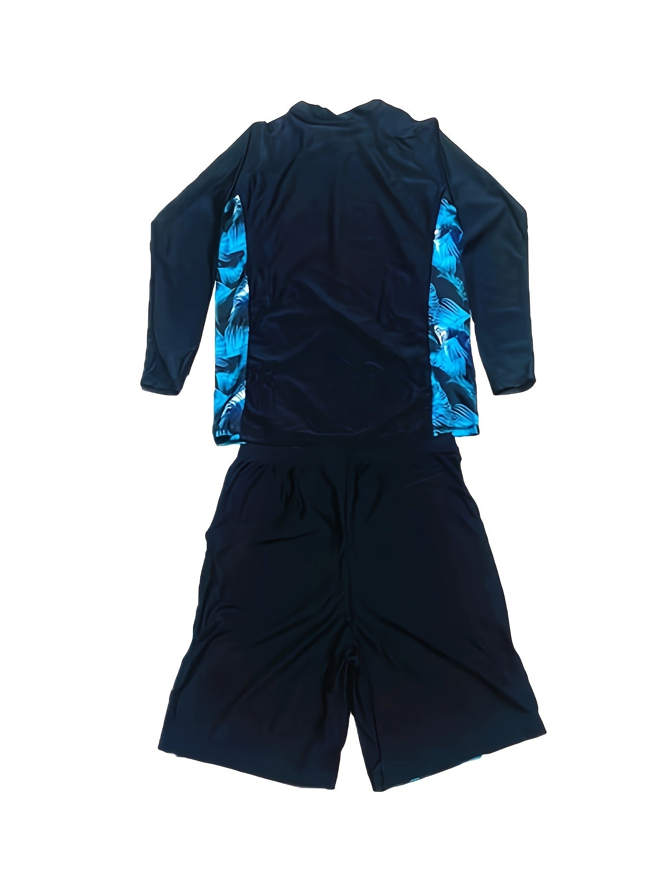 Men's Swimsuit, Quick-drying Skinny Fit Diving Suit, Leaf Pattern Long Sleeve T-shirt And Shorts, Highly Stretch Wetsuit For Diving Snorkeling